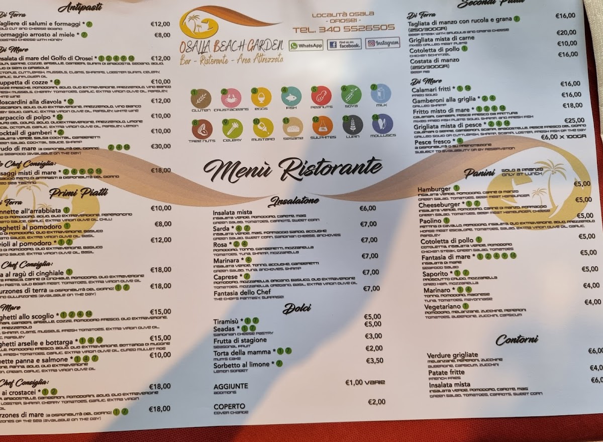 Ristorante Osalla Beach Garden Menu